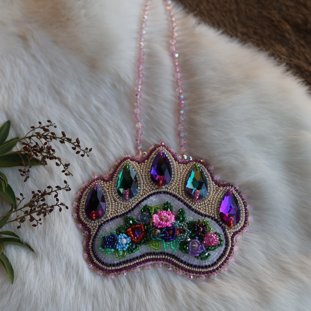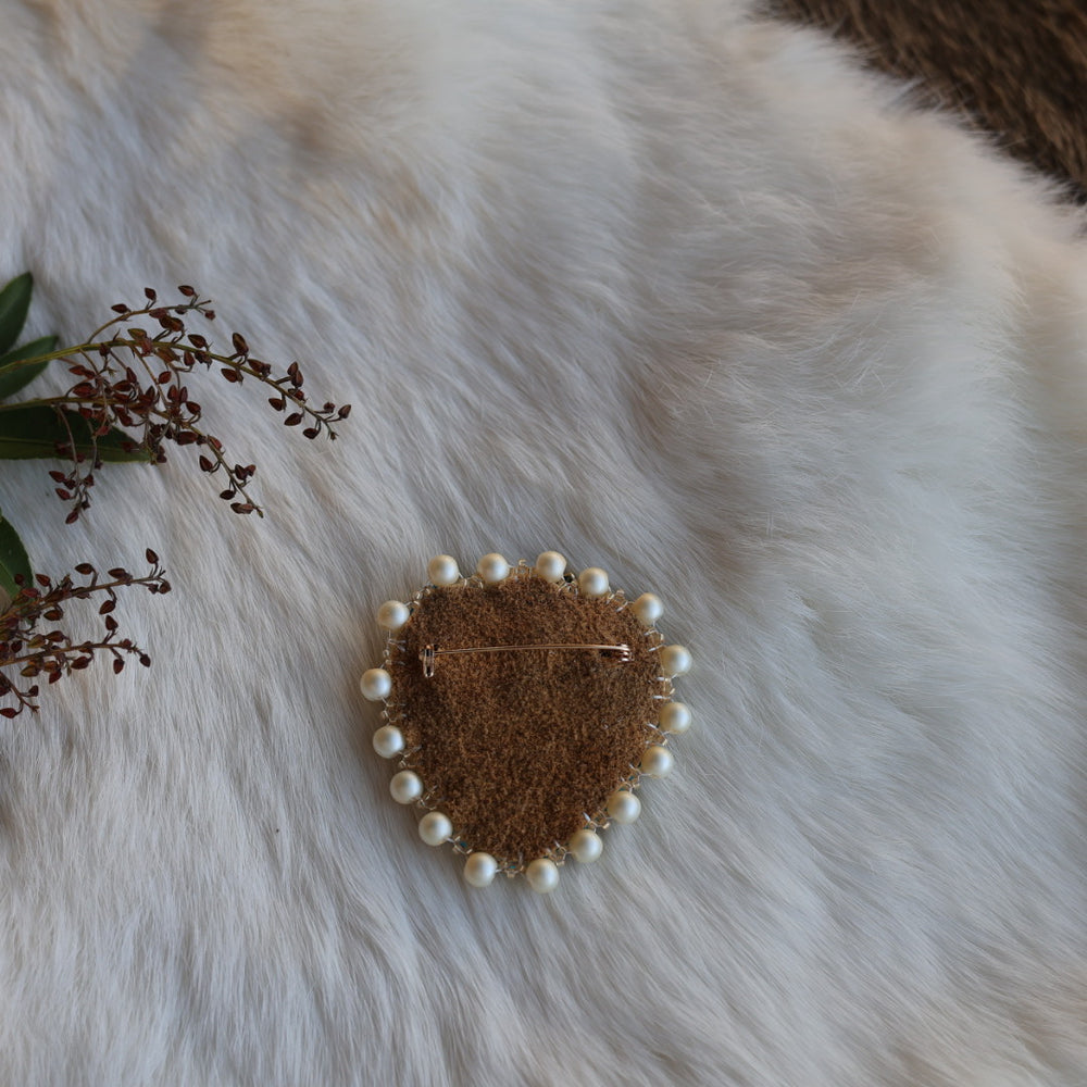 Mercedes G. Teal Quill & Floral Beaded Bison Brooch