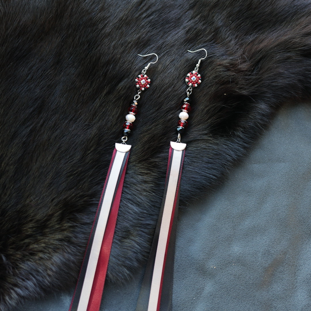 Helen Oro Designs Burgundy Bead & Ribbon Earrings