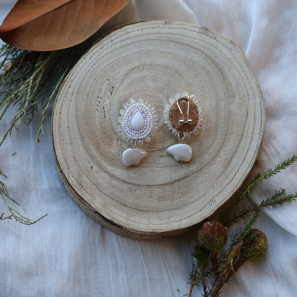 Boreal Forest Beads White Quartz Teardrop Beaded Earrings