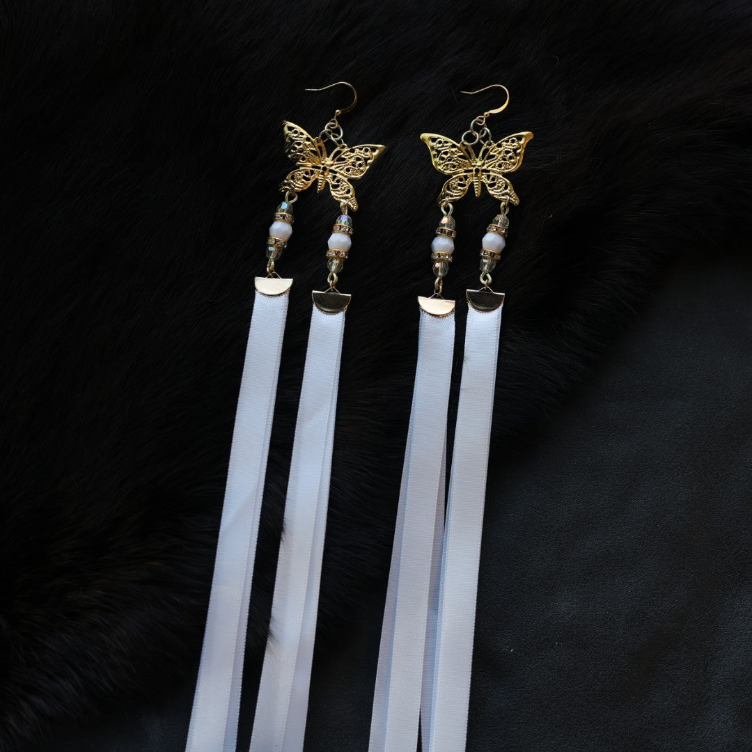 Helen Oro Designs Butterfly & White Ribbon Earrings