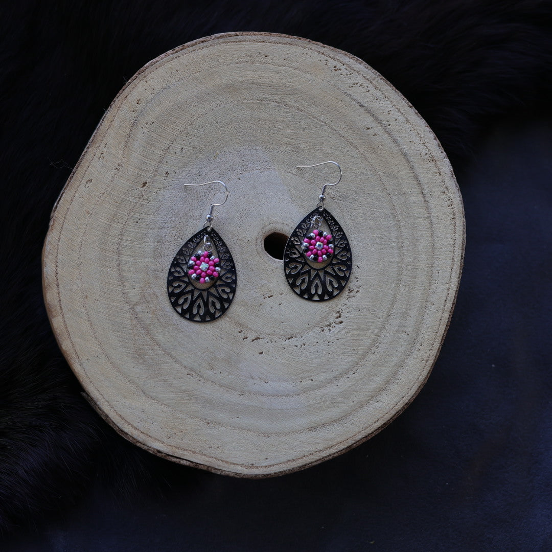 Helen Oro Designs Pink Beaded Metal Charm Earrings