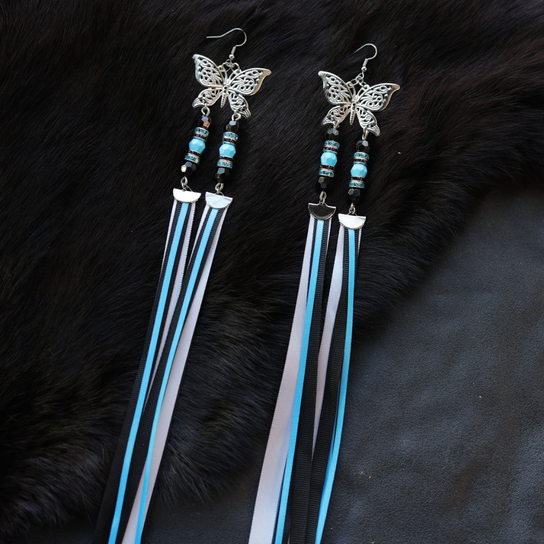 Helen Oro Designs Butterfly & Blue Ribbon Earrings