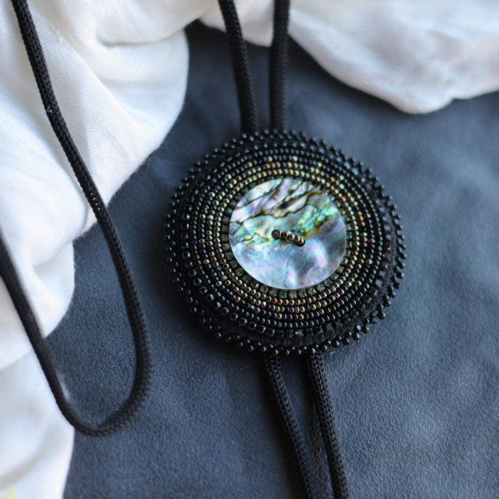 Beth Rose Designs Beaded Abalone Bolo Tie
