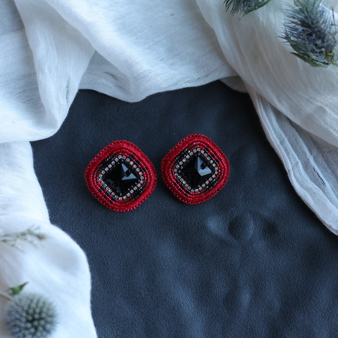 Beth Rose Designs Red & Black Square Beaded Earrings