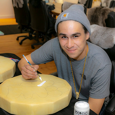 Brent Hardisty, also known as Niiwin Binesi, is a woodland-style painter using acrylics on canvas. Influenced by Toronto's graffiti subculture, he gained recognition painting murals for organizations and businesses. His current style reflects his upbringing in a First Nation community in Northern Ontario.