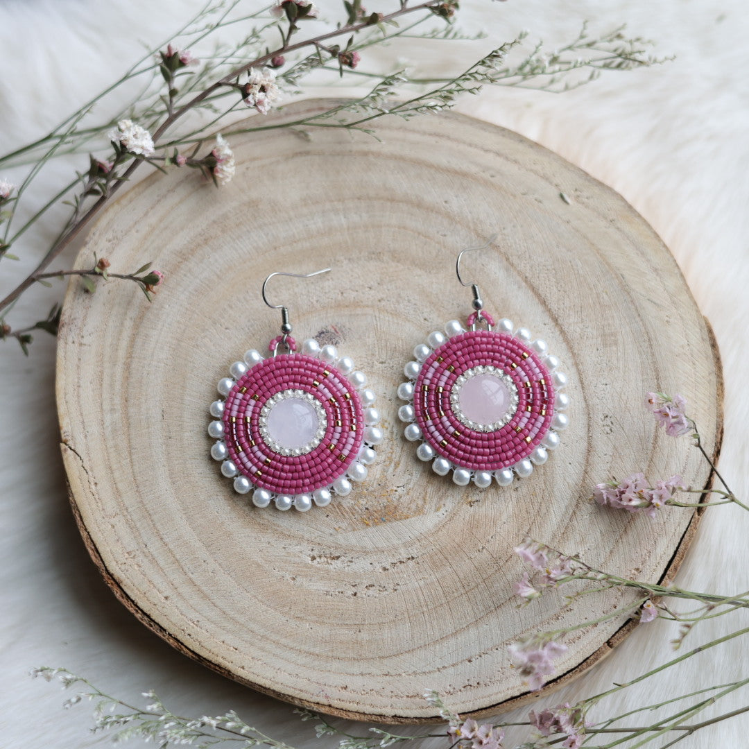 Sweetgrass Woman Creations Rose Quartz Beaded Earrings