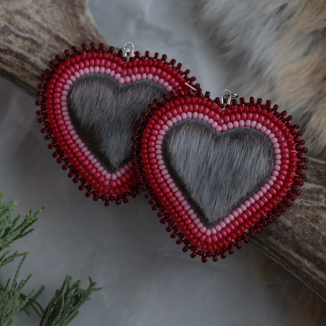 Keegan W. Seal Fur Beaded Heart Earrings