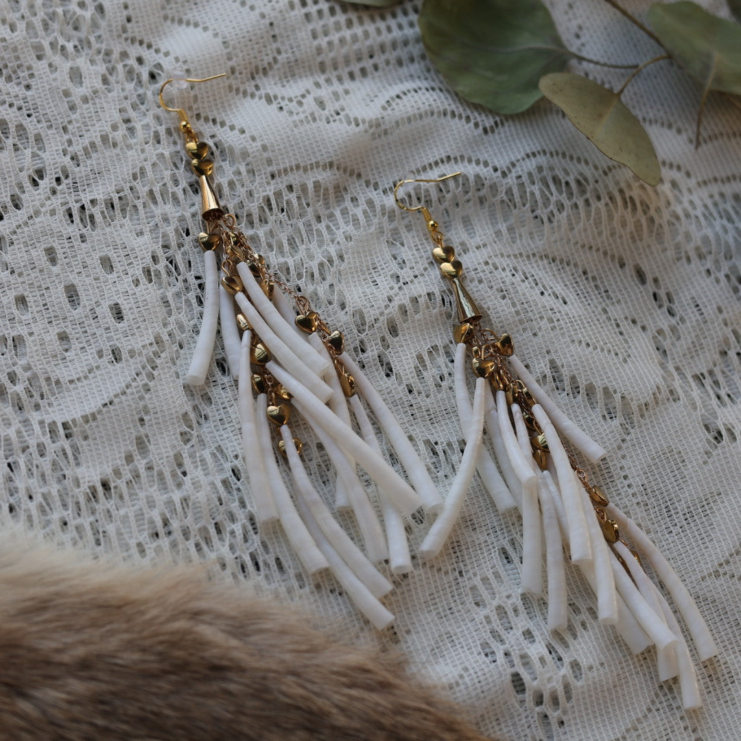 Prairie Sage Beadwork Looping 2 Tiered Dentalium Drop Earrings