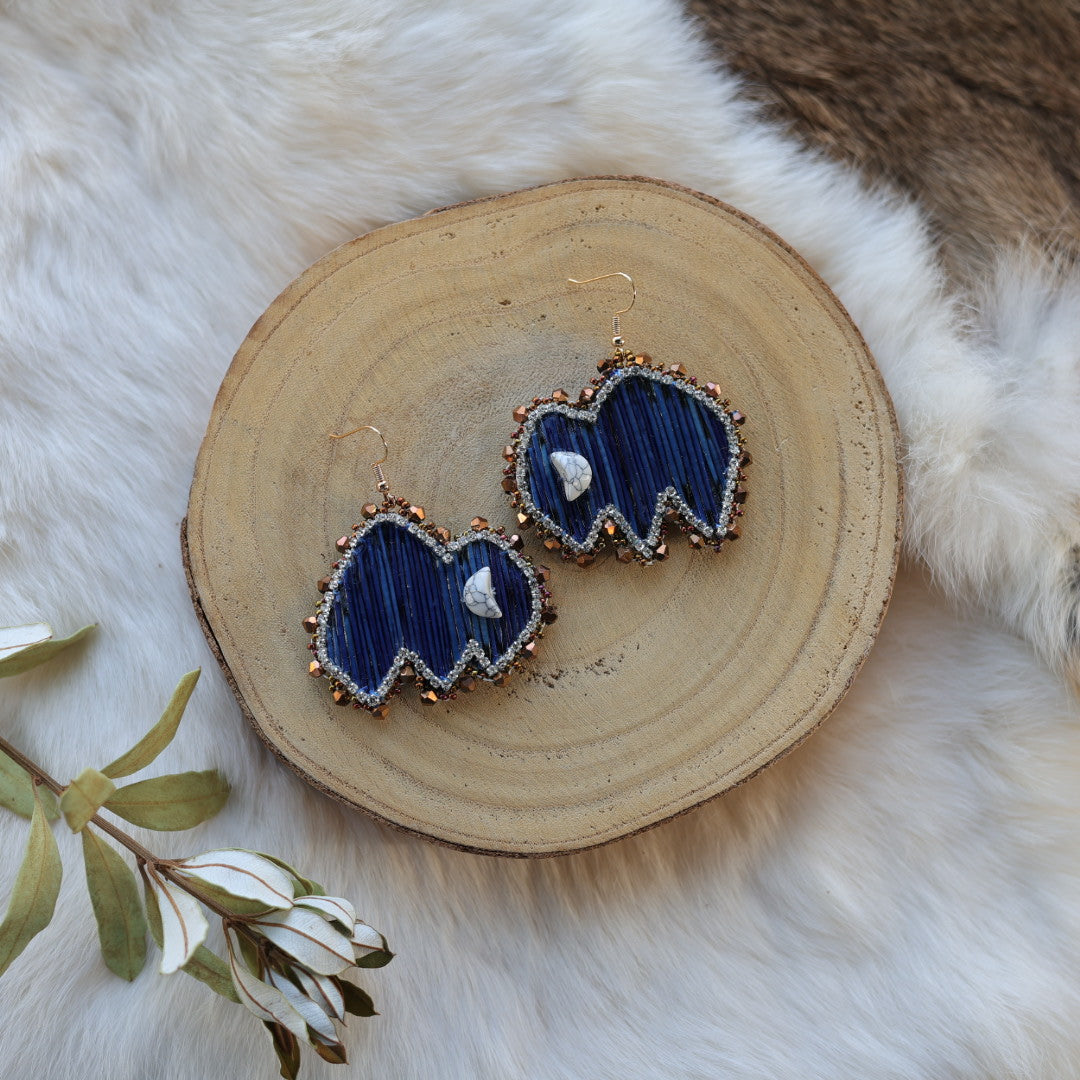 Mercedes G. Moody Blue Quill Bison Drop Earrings