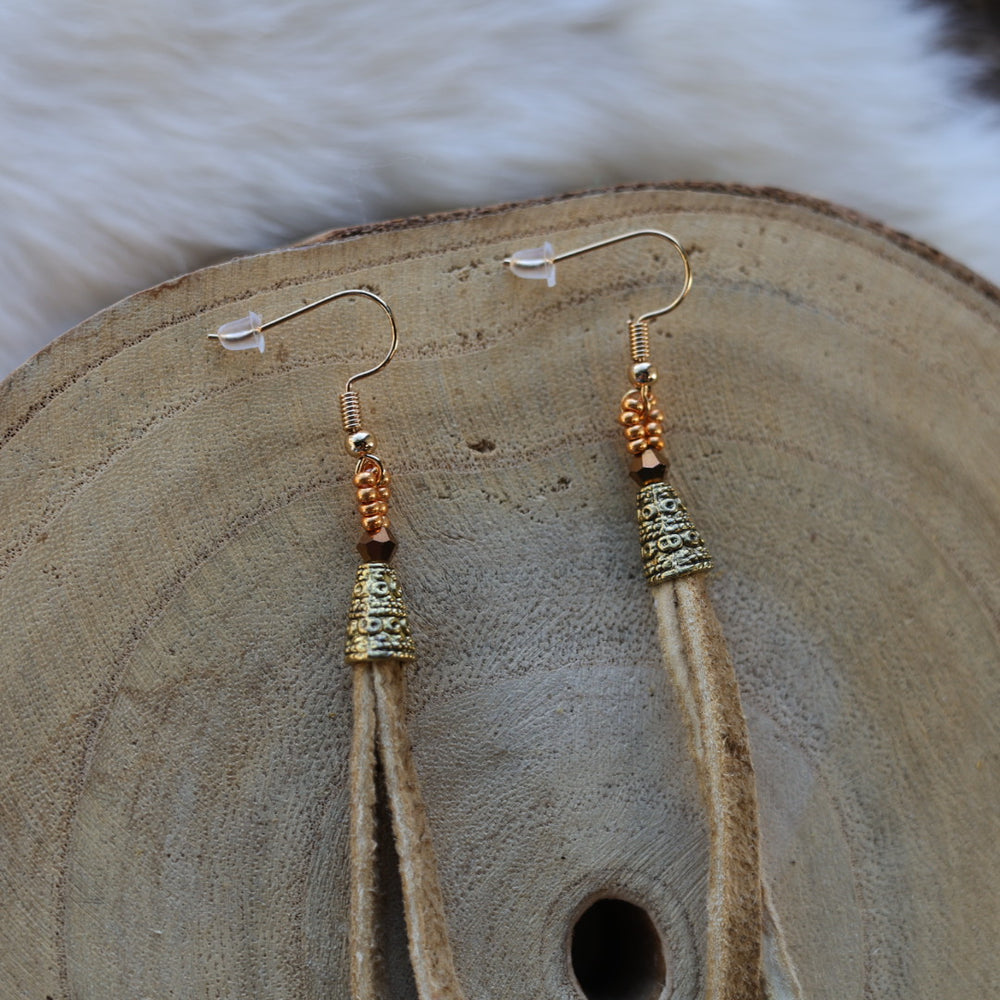 Boreal Forest Beads Floral Moose Hide Tassel Earrings