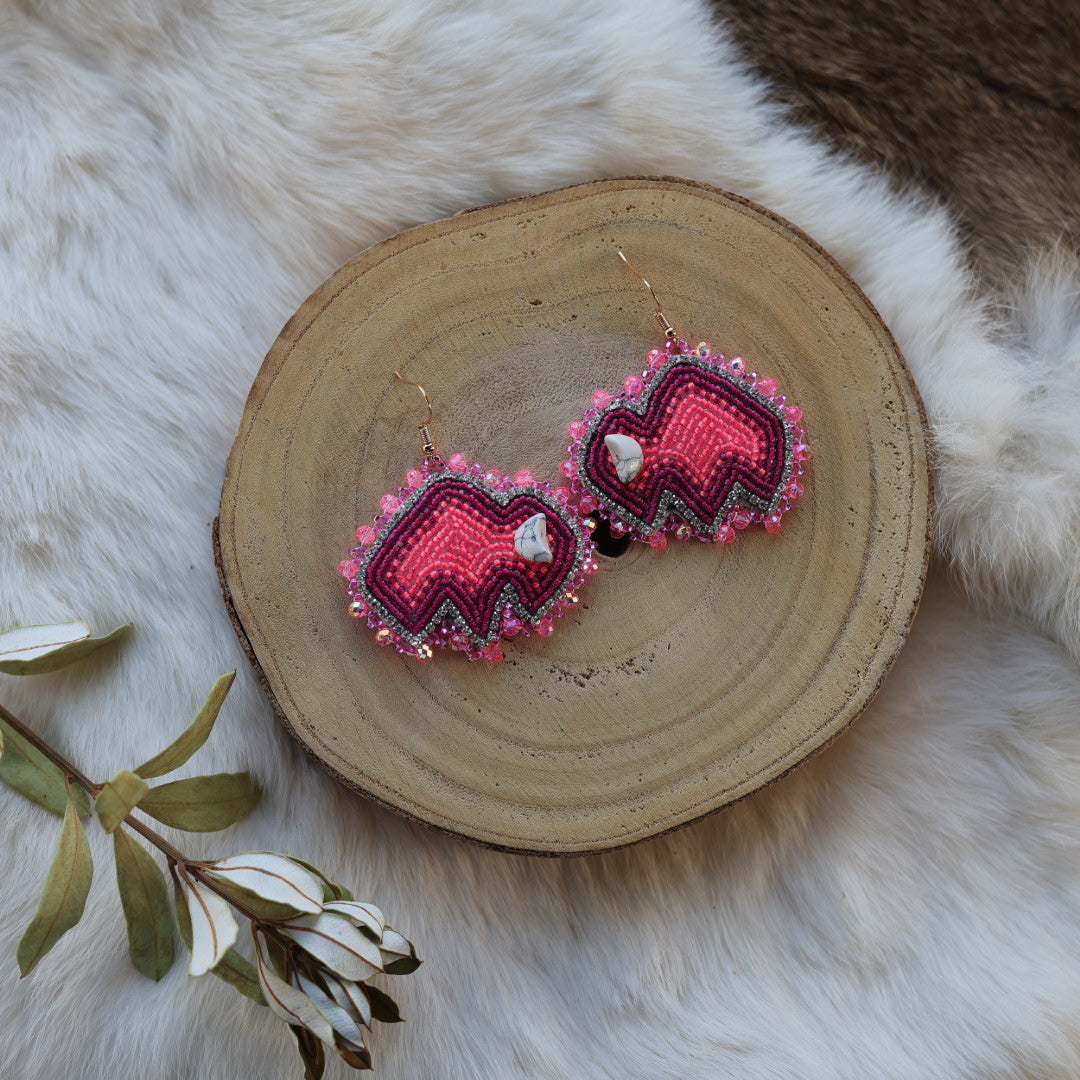 Mercedes G. Pink Duotone Bison Beaded Earrings