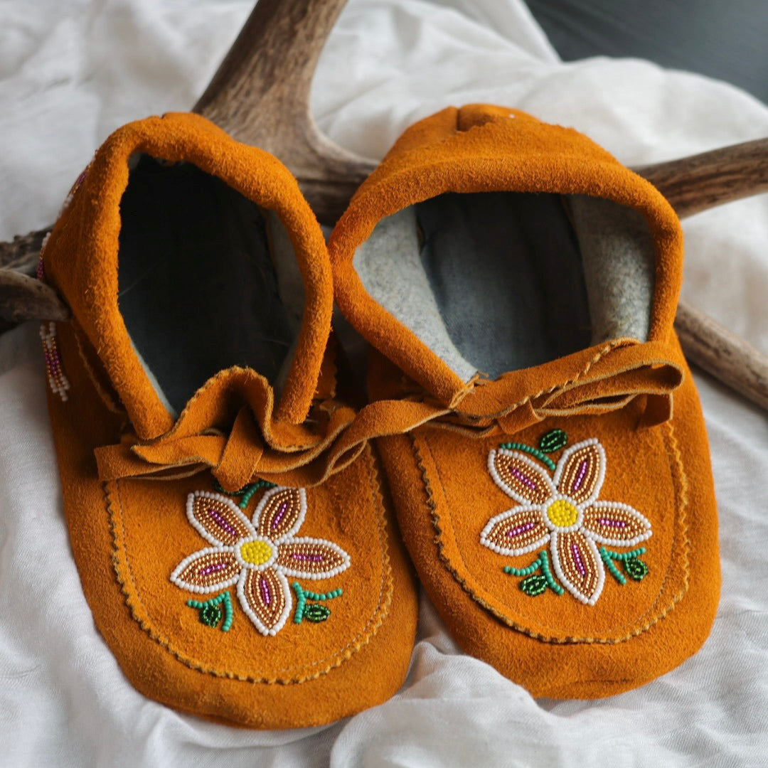 Sandra L. Women's 8 Beaded 4 Petal Floral Handmade Moccasins