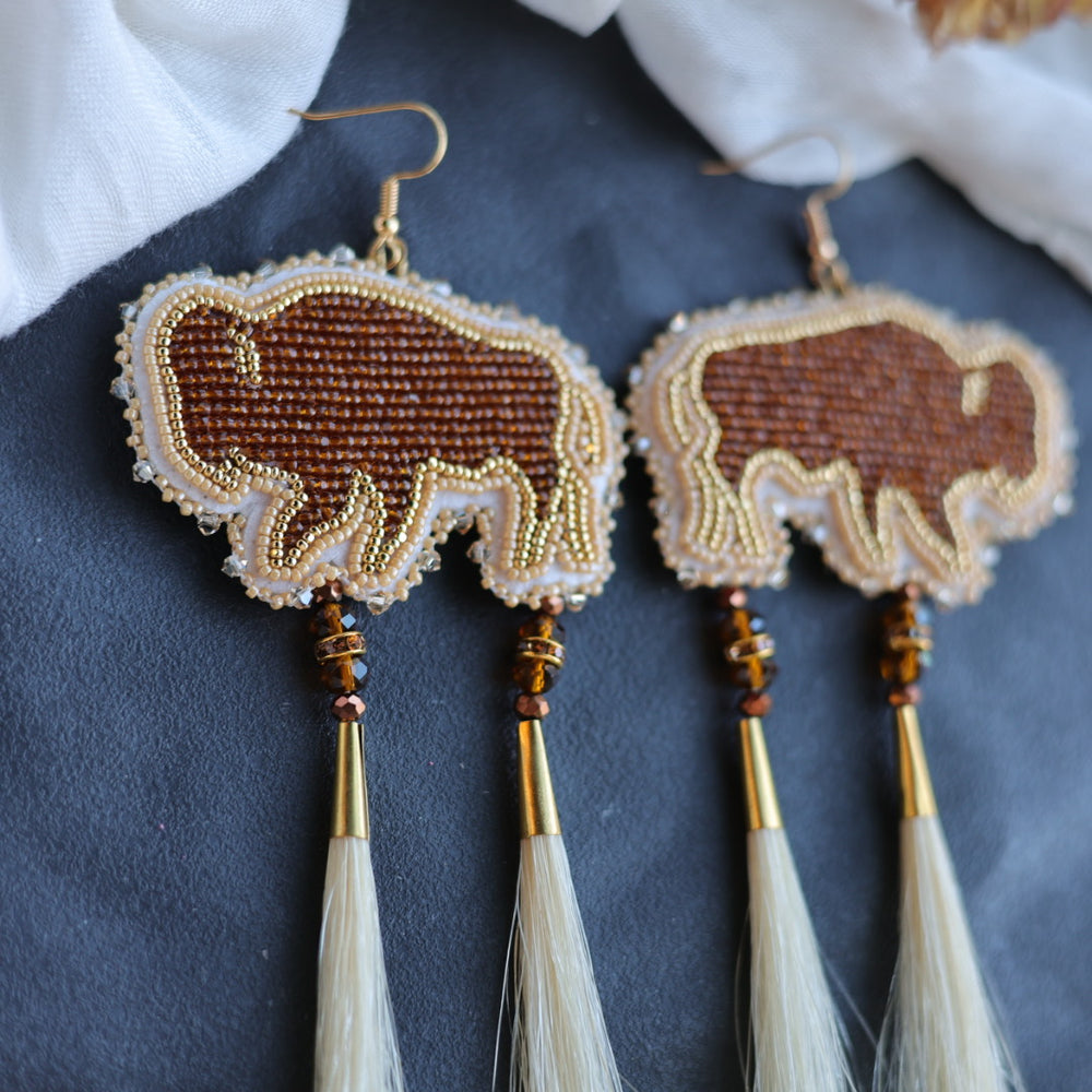 Beth Rose Designs Bison Beaded & Horsehair Earrings