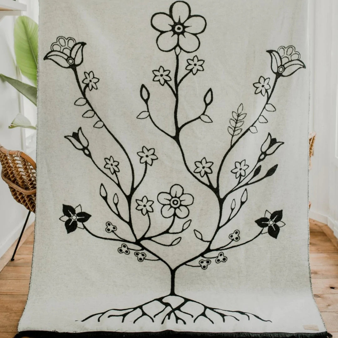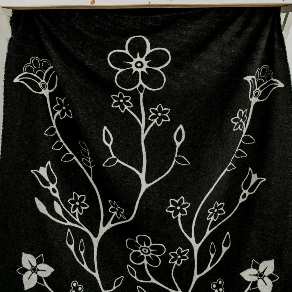 MINI TIPI Black & White Woodland Floral Panel Blanket