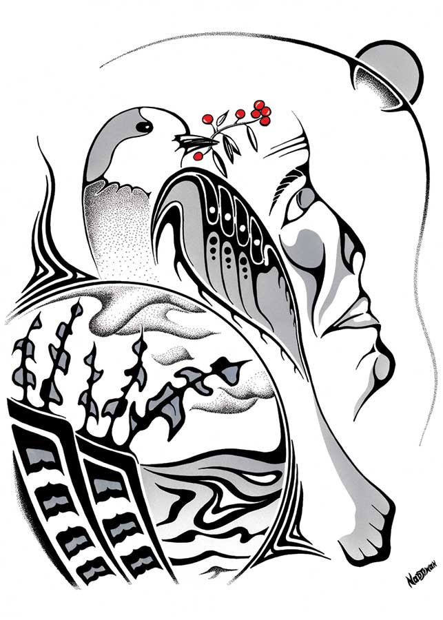 All That Is Good bookmark by artist Mark Nadjiwan. His cultural background is Anishnabek. The artist is paid a royalty on every sale.