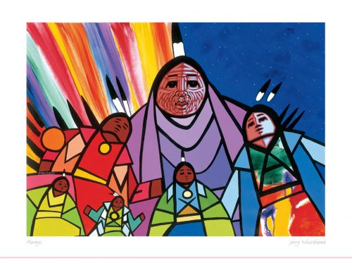 Cree artist Jerry Whitehead, born in 1957 on the James Smith First Nation, has a strong academic background, earning a Bachelor of Arts in Indian Art from the University of Regina in 1983 and a Bachelor of Fine Arts from the Nova Scotia College of Arts and Design in 1987. His artwork, which has long focused on powwow dancers, is deeply influenced by his childhood experiences and the lasting impression the dancers left on him. Jerry views this theme as a way to express his culture while reflecting on life's broader issues. Now residing in Vancouver, BC, Jerry continues to work as a full-time artist.