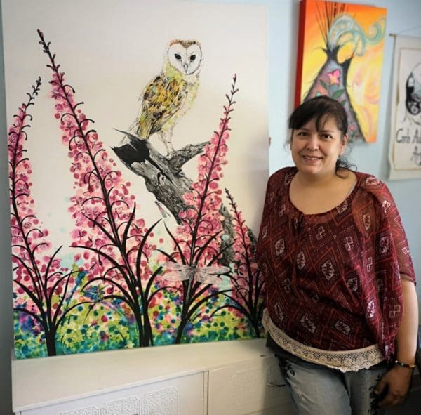 Hummingbird Feathers by artist Carla Joseph. Her cultural background is Metis/Cree. The artist is paid a royalty on every sale.
