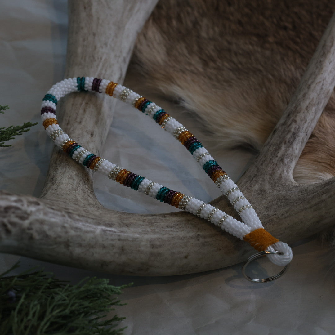 Beautiful beaded wrist lanyards by local Indigenous artist Keegan W.