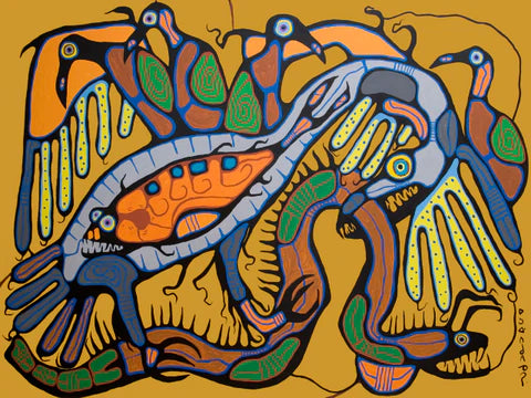 Flowers and Birds designed by Ojibwa artist Norval Morrisseau.