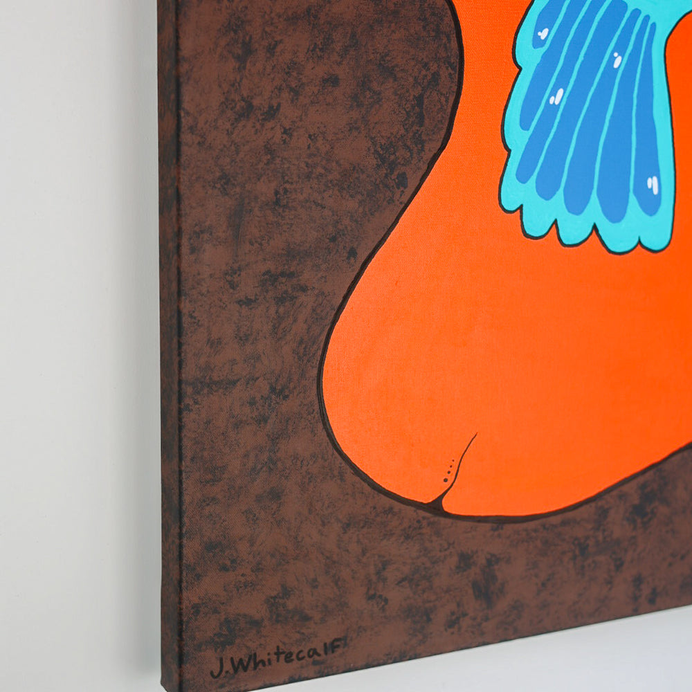 J.wapiskisiw is a plains Cree artist from Treaty 6 territory in Saskatchewan. J.wapiskisik started his art career in late 2021 with graffiti art and branched out to larger projects in 2023. J.wapiskisiw continues to create art with his vibrant colours, nature, stories through art that are rooted in his Indigenous worldview. J.wapiskisiw mixes two art styles of the vibrant colours of the graffiti art and the animals and traditional stories of his indigenous background.