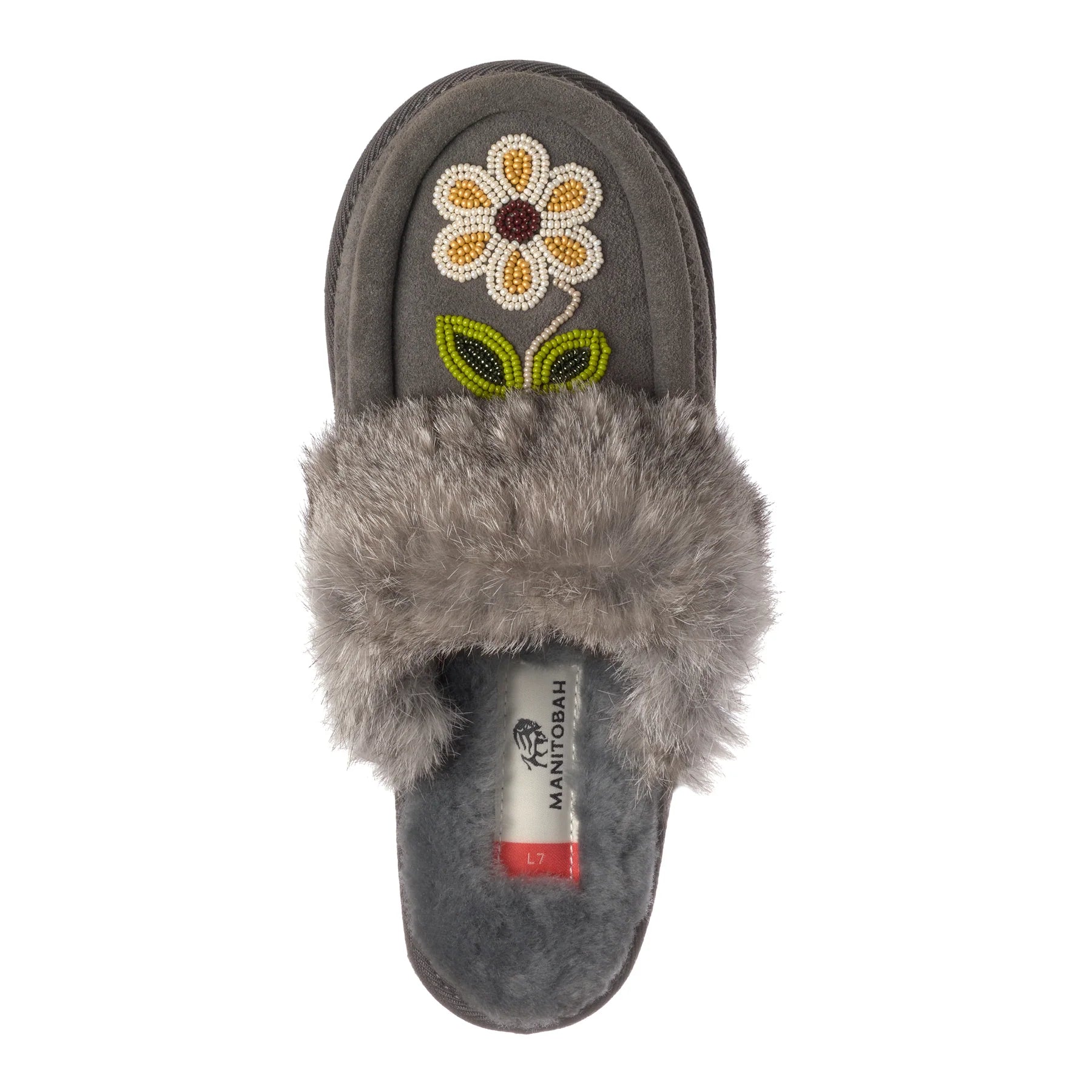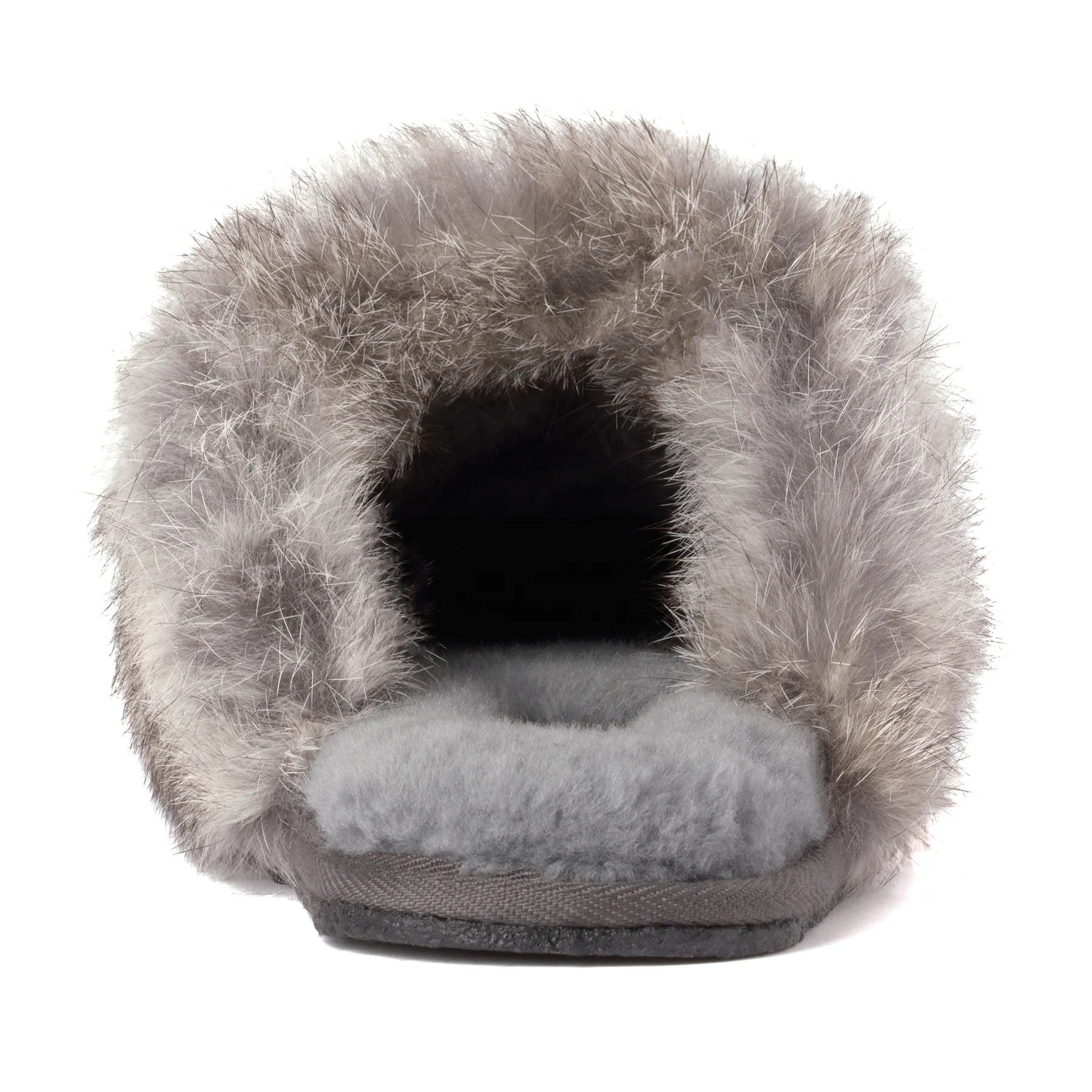 The Métis Scuff is where moccasin heritage meets slipper-slide ease—a cozy essential featuring a soft rabbit fur cuff, plush shearling footbed, and a durable crepe sole made for lounging in or stepping out.