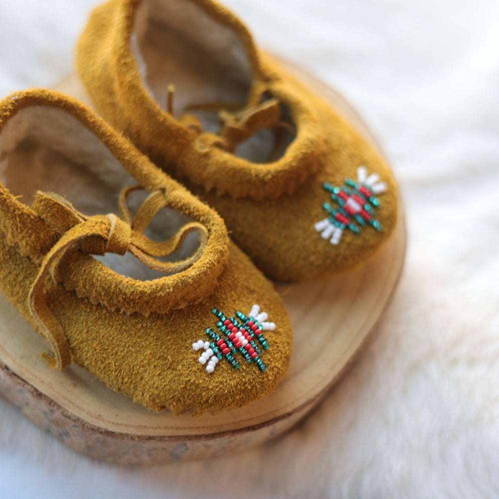 Size 5 moccasins, handmade by Indigenous artisan T.Sullivan.