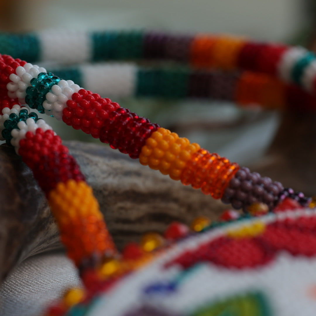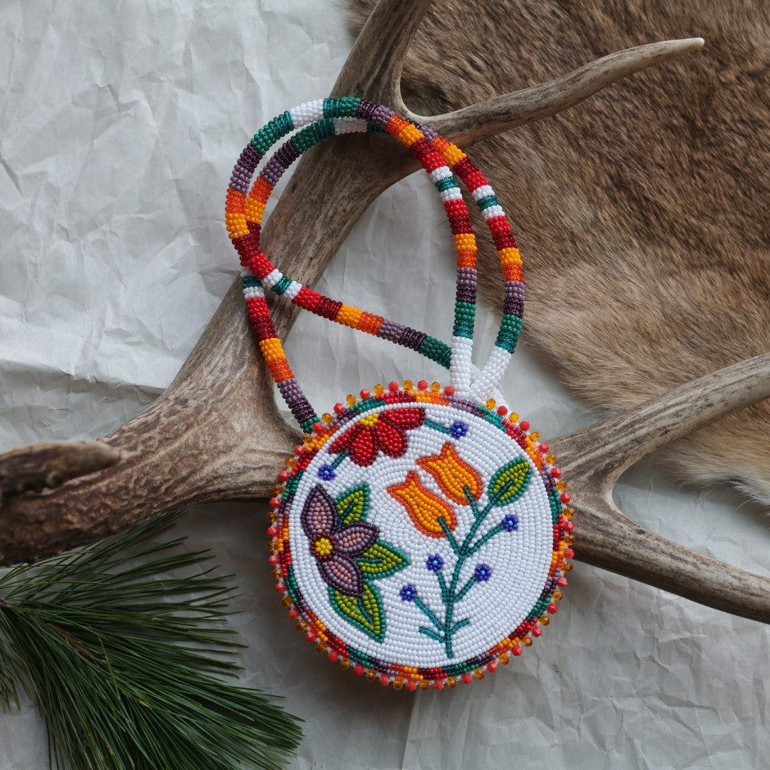 Beautifully beaded floral medallion, crafted by artist Keegan W.