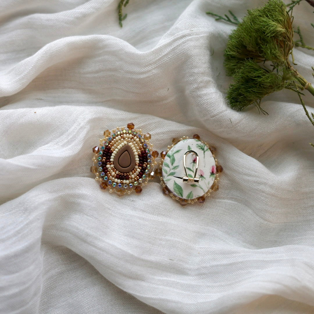 Beaded earrings in a perfect neutral colour scheme by Indigenous artist Kimowan of Prairie Beads.