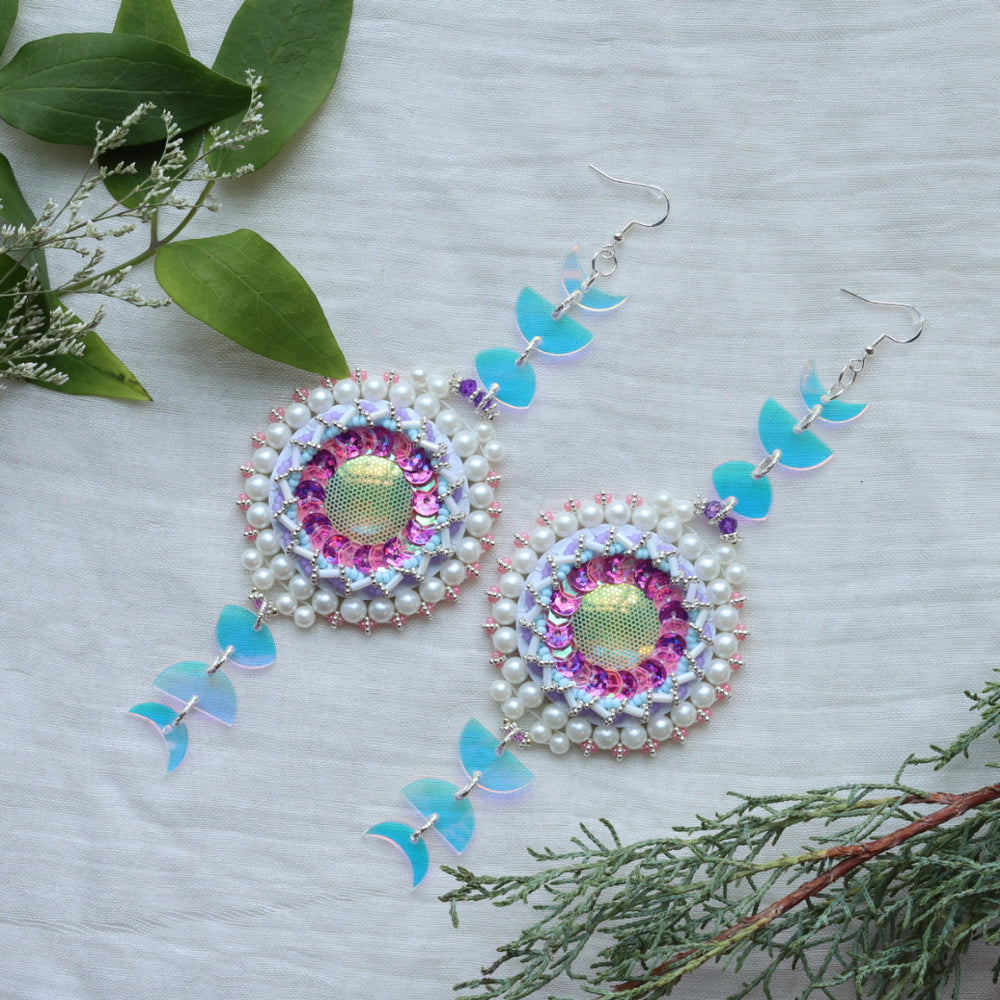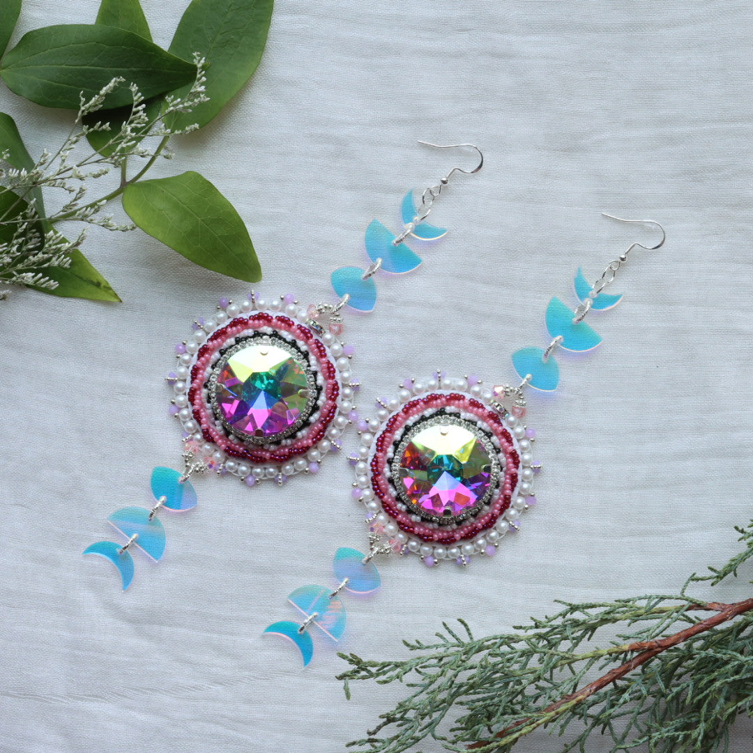Kristina Cardinal Iridescent Moon Phase Earrings