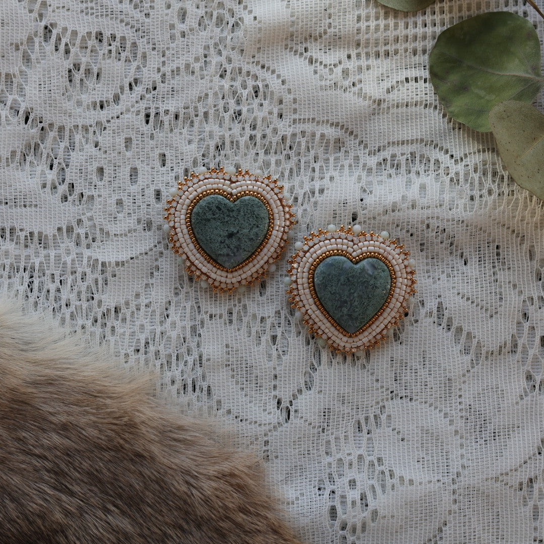 Prairie Sage Beadwork White Buffalo Turquoise Heart Beaded Earrings