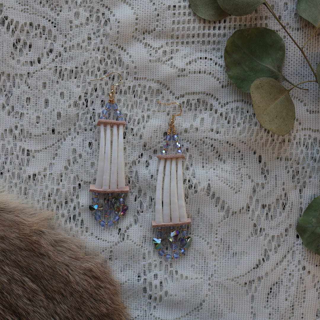 Prairie Sage Beadwork Opalescent Dentalium Earrings