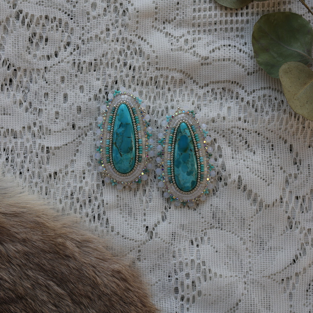 Prairie Sage Beadwork Turquoise Teardrop Beaded Earrings