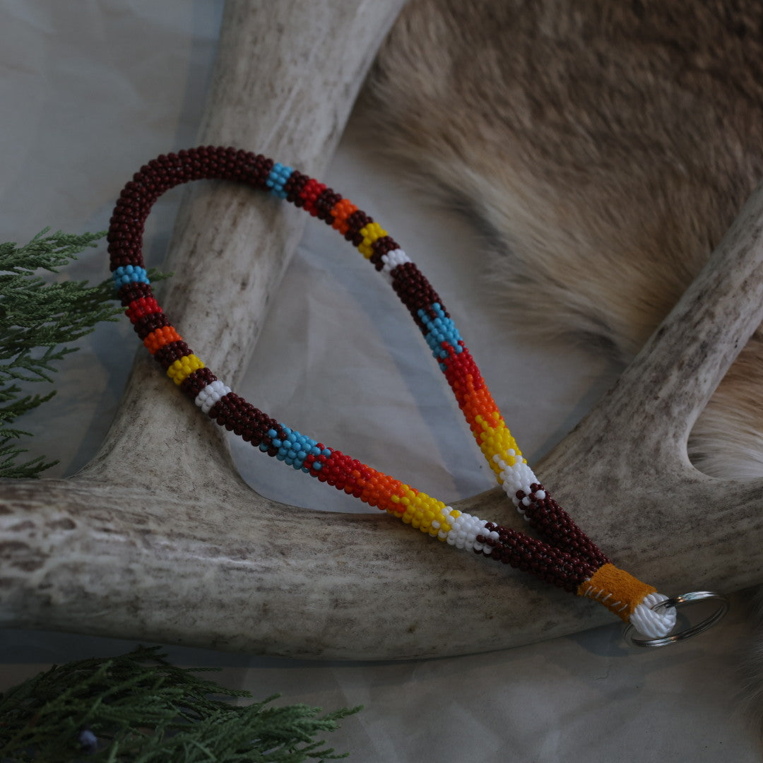 Beautiful beaded wrist lanyards by local Indigenous artist Keegan W.