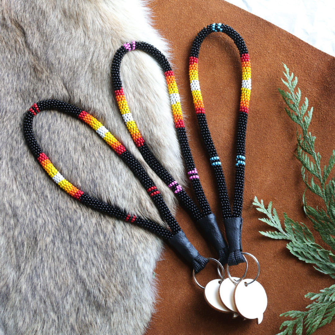 Carefully beaded wrist lanyards by Canoe Lake artist, Christoper I.