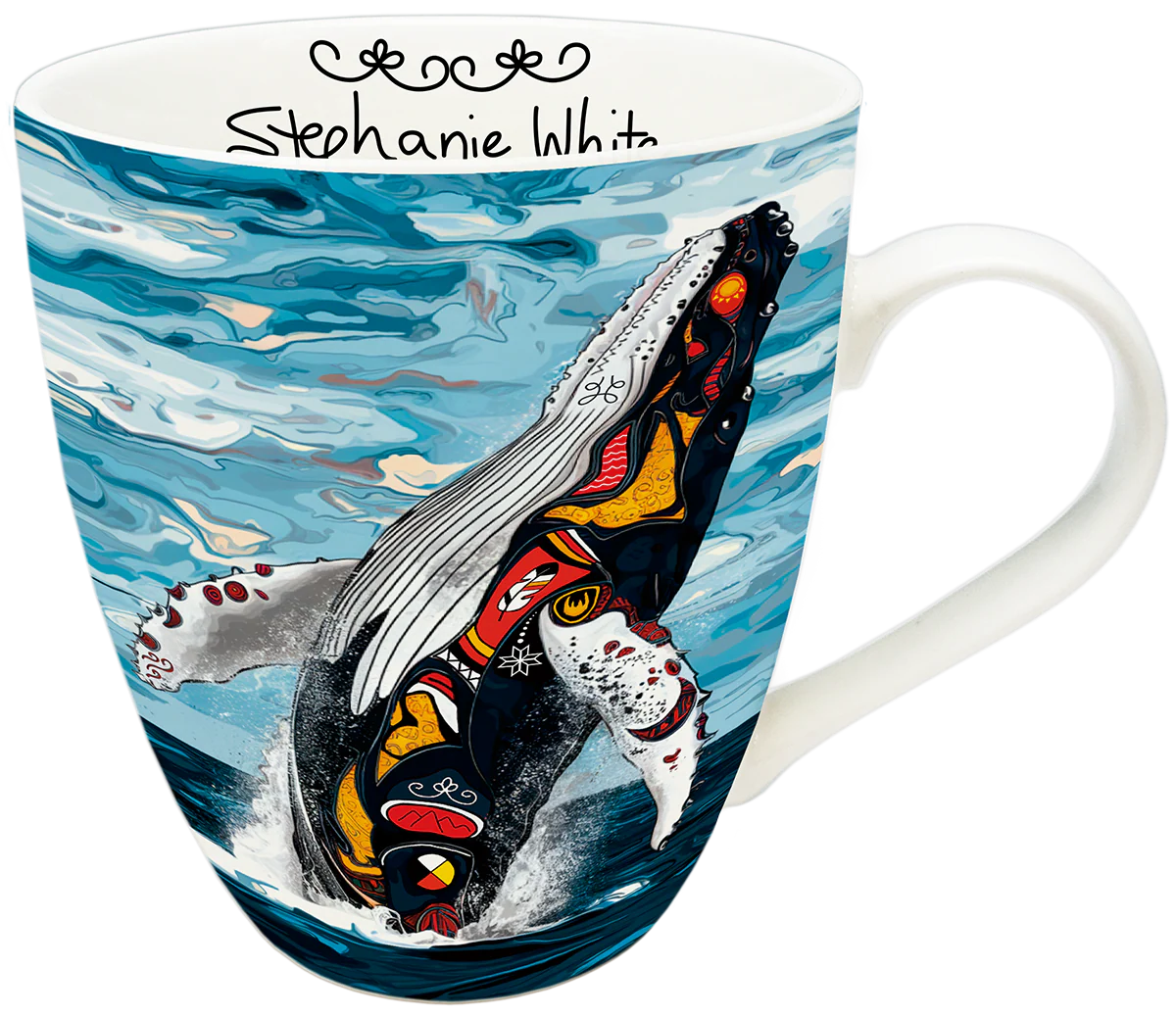 Spirit Whale mug by artist Stephanie White. Her cultural background is Mi’kmaq, Qalipu Band, Newfoundland and Labrador. The artist is paid a royalty on every sale.