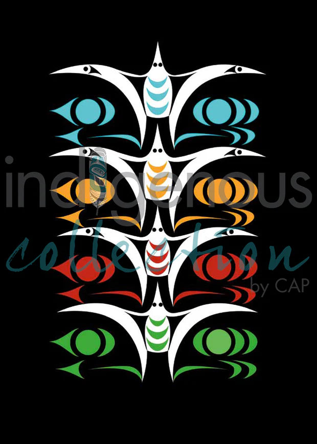 Seagulls in Flight by artist Zac George. His cultural background is Coast Salish.
