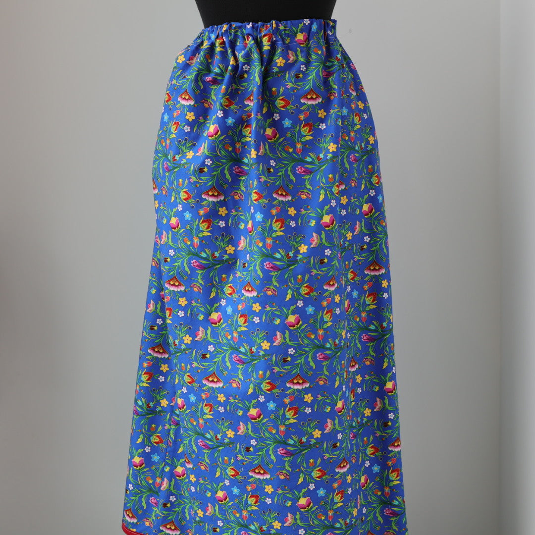 Women's skirt sewn by Vi's CREE-ations. These quality creations are meticulously sewn by Indigenous crafts-woman Vi K. of Saskatoon.