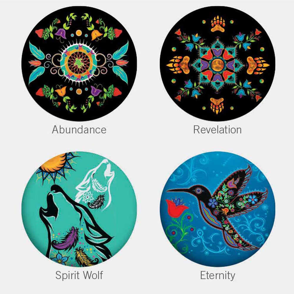 All images by Tracey Metallic. Her cultural background is Mi'gmaq. The artist is paid a royalty on every sale.