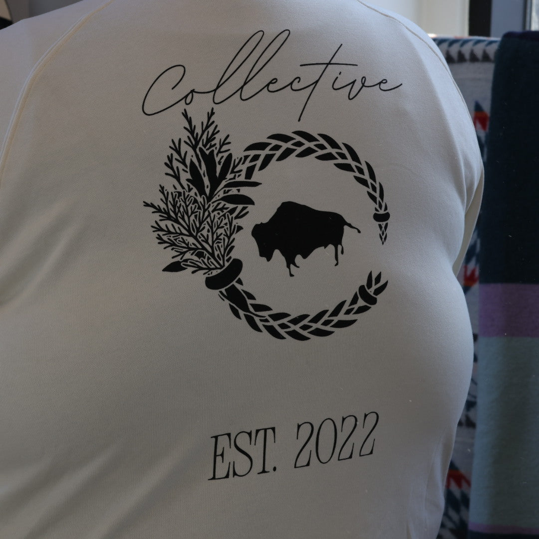 Wanuskewin Collective merch is here! Walk with us in these ultra soft & comfortable crewneck sweatshirts. Available in two colours and three designs, for you to choose the message that speaks to you. Each sweatshirt features one of three taglines across the chest, fading bison hoof prints up the left sleeve, and a Collective crest across the back. Designed by our team as a celebration of our vision & those who share it.