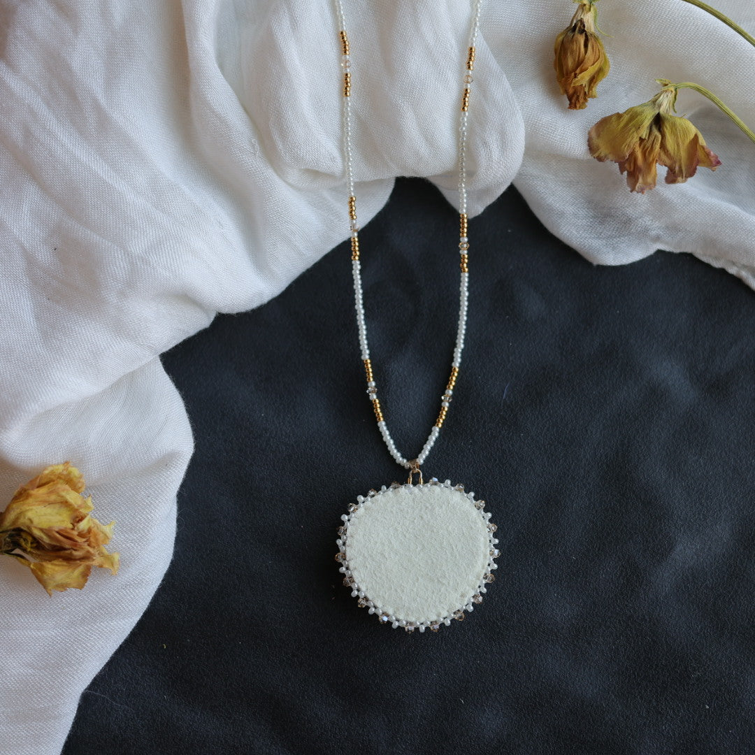 2" pendant necklace complete on a 20" seed beads and bicone beads chain.
