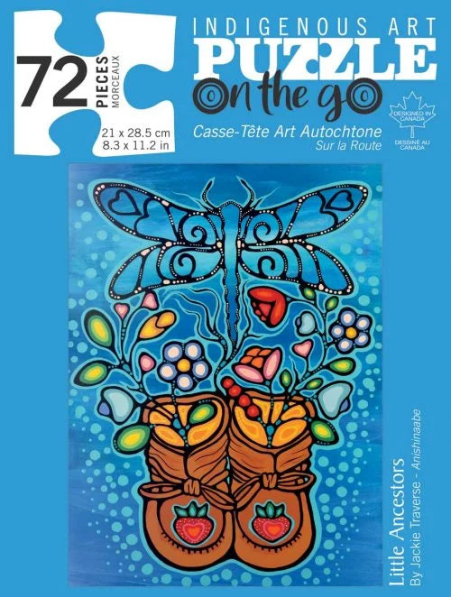 Little Ancestors 72 piece puzzle, by artist Jackie Traverse. Her cultural background is Anishinaabe The artist is paid a royalty on every sale.