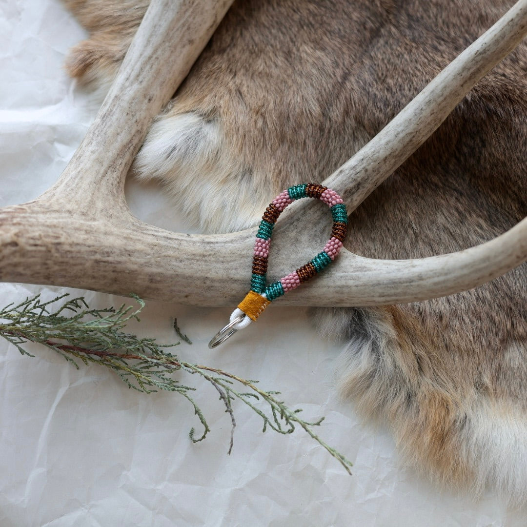 3" finger lanyards beaded with size 11 seed beads with a wrapping technique. Colours and patterns may vary!