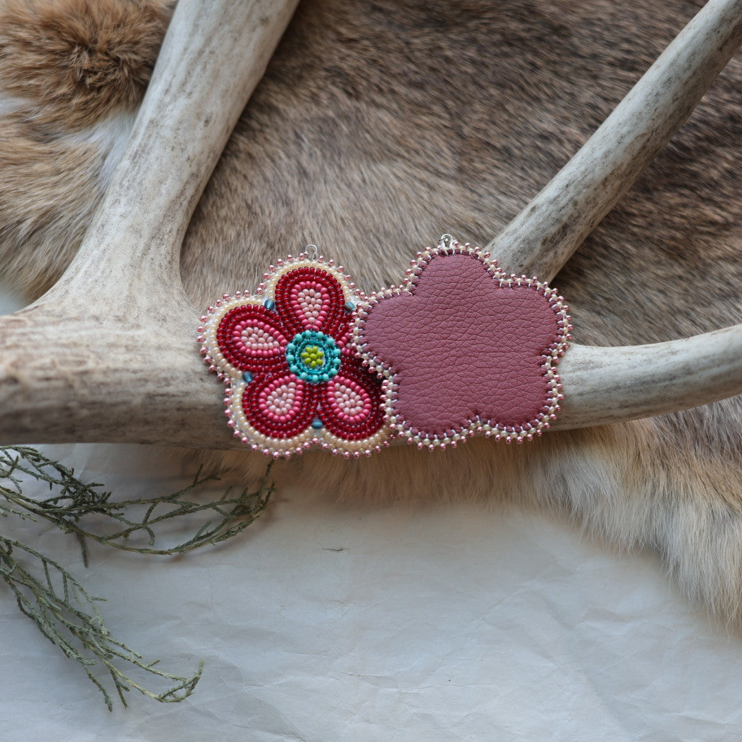 Pairs perfectly with these large 5-petal floral earrings, also beaded with size 11 seed beads. Complete with faux leather backing and set on hypoallergenic hooks that drop 3.5"