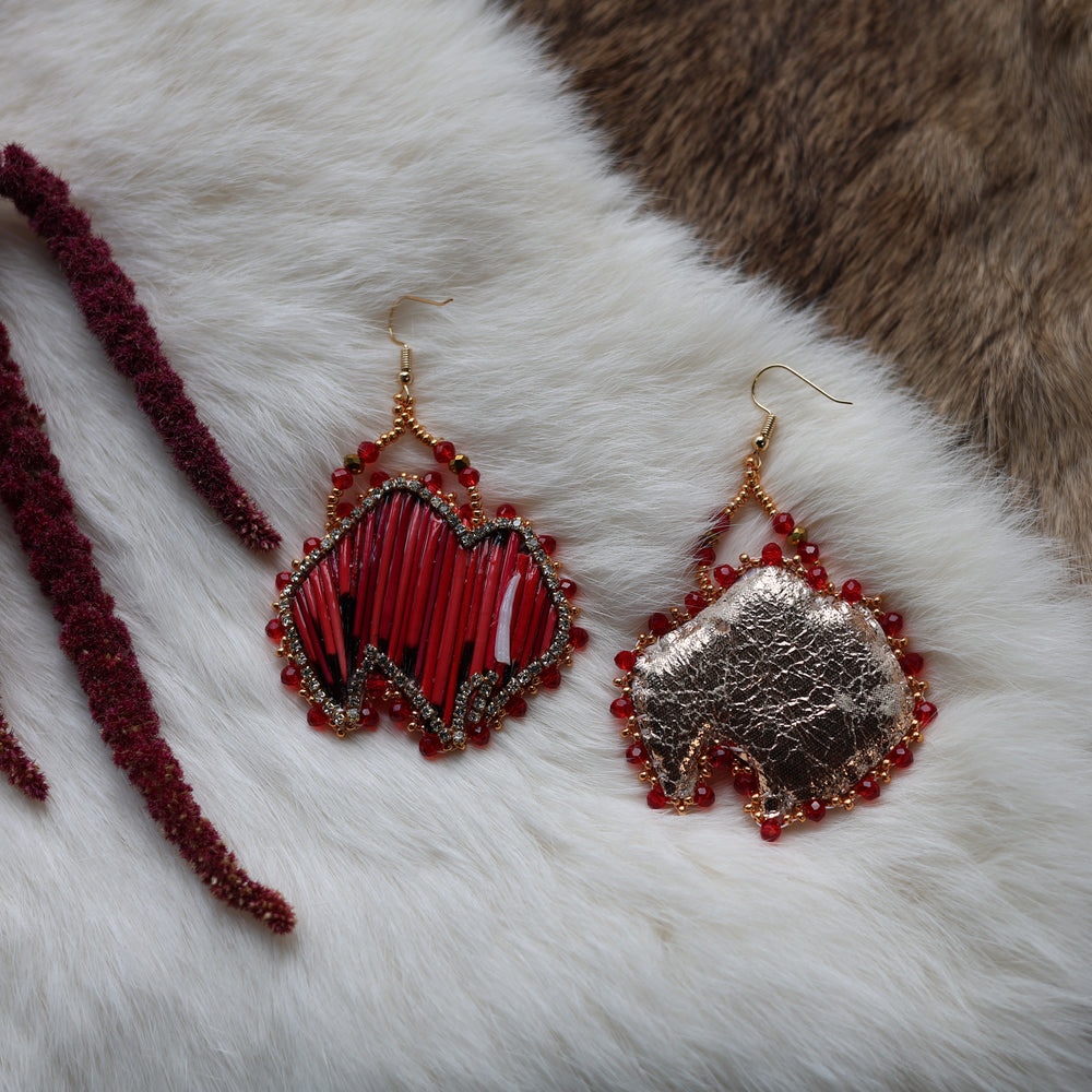 Mercedes G. Large Red Quill Bison Drop Earrings